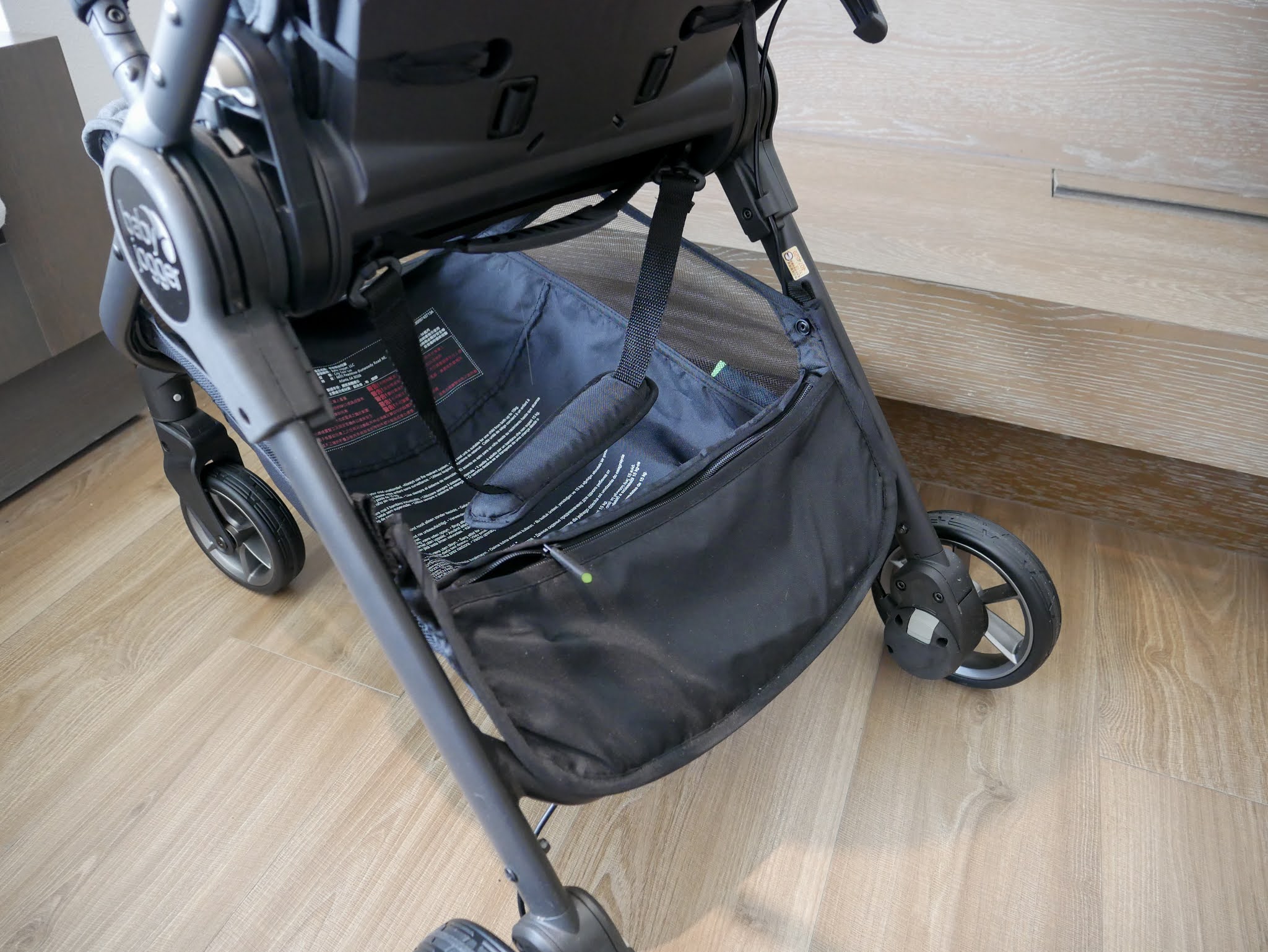 baby jogger city tour LUX 可放下一條背巾與一個20公升的購物包。