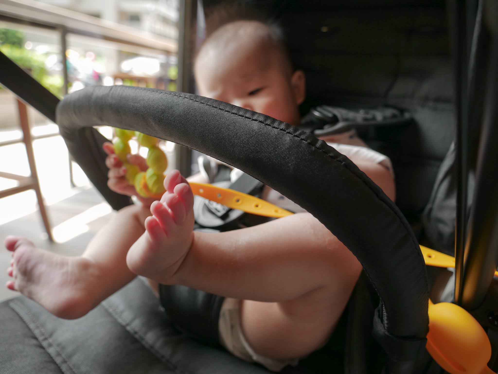 除了安全帶之外,前扶手也是寶寶喜愛的設計。(笑~)