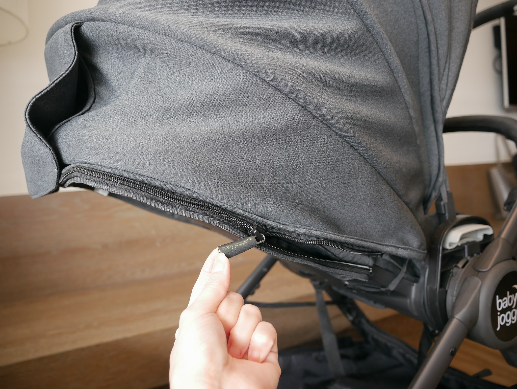 頂篷上方設有磁釦式的寶寶觀察窗。