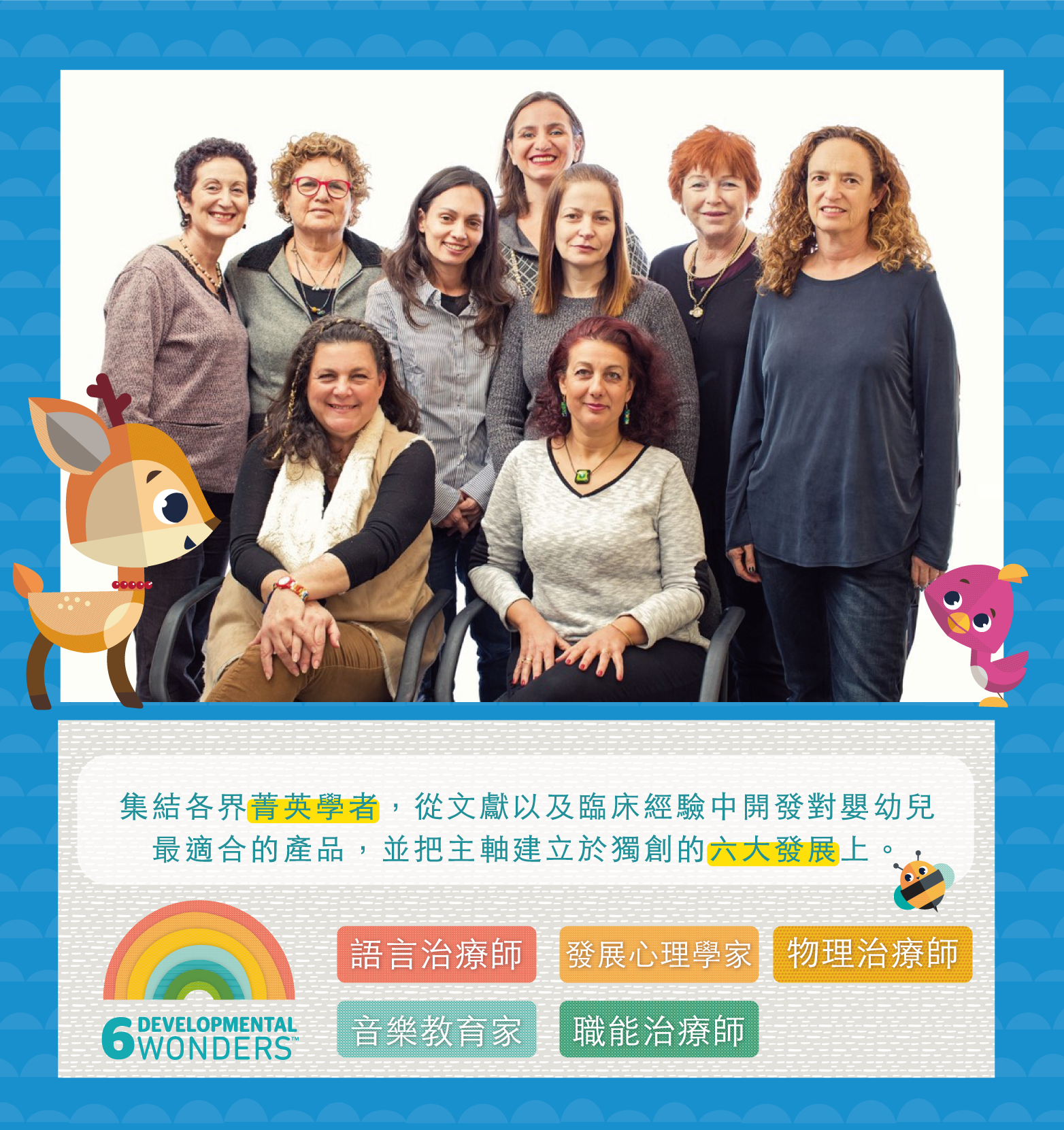 集結各界權威-兒童心理博士、兒科醫生、物理治療師、語言發展專家、兒童音樂發展專家等菁英成立幼兒潛能啟發中心。