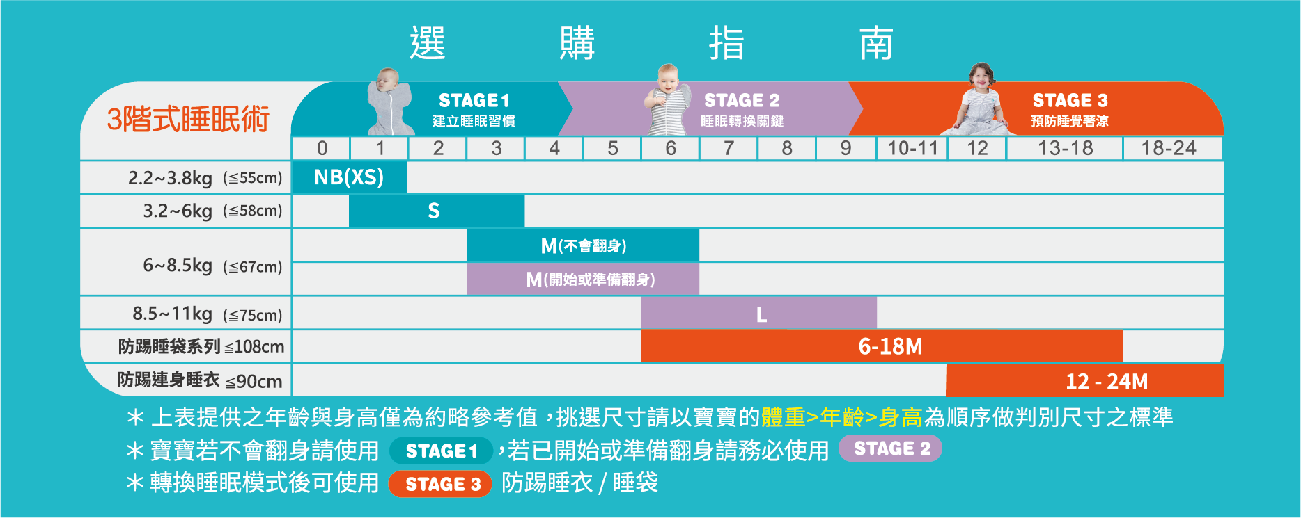 更建議尺寸挑選請依寶寶的體重>年齡>身高 為順序做判別尺寸之標準