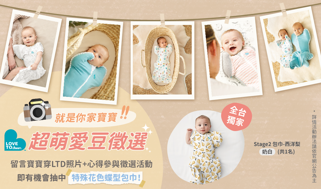 (照片需清晰,能清楚識別影片及 LTD蝶型包巾及寶寶超萌五官 )