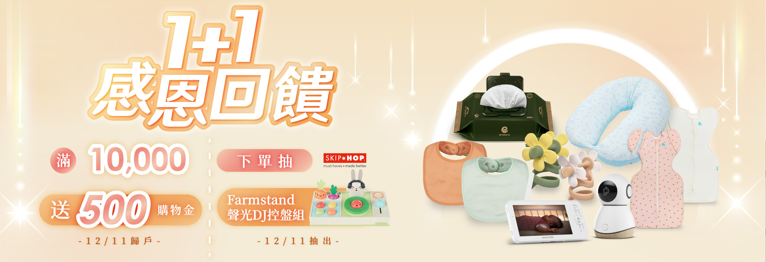 下單就抽SKIP HOP聲光DJ盤玩具 ; 滿$10000 送 $500購物金