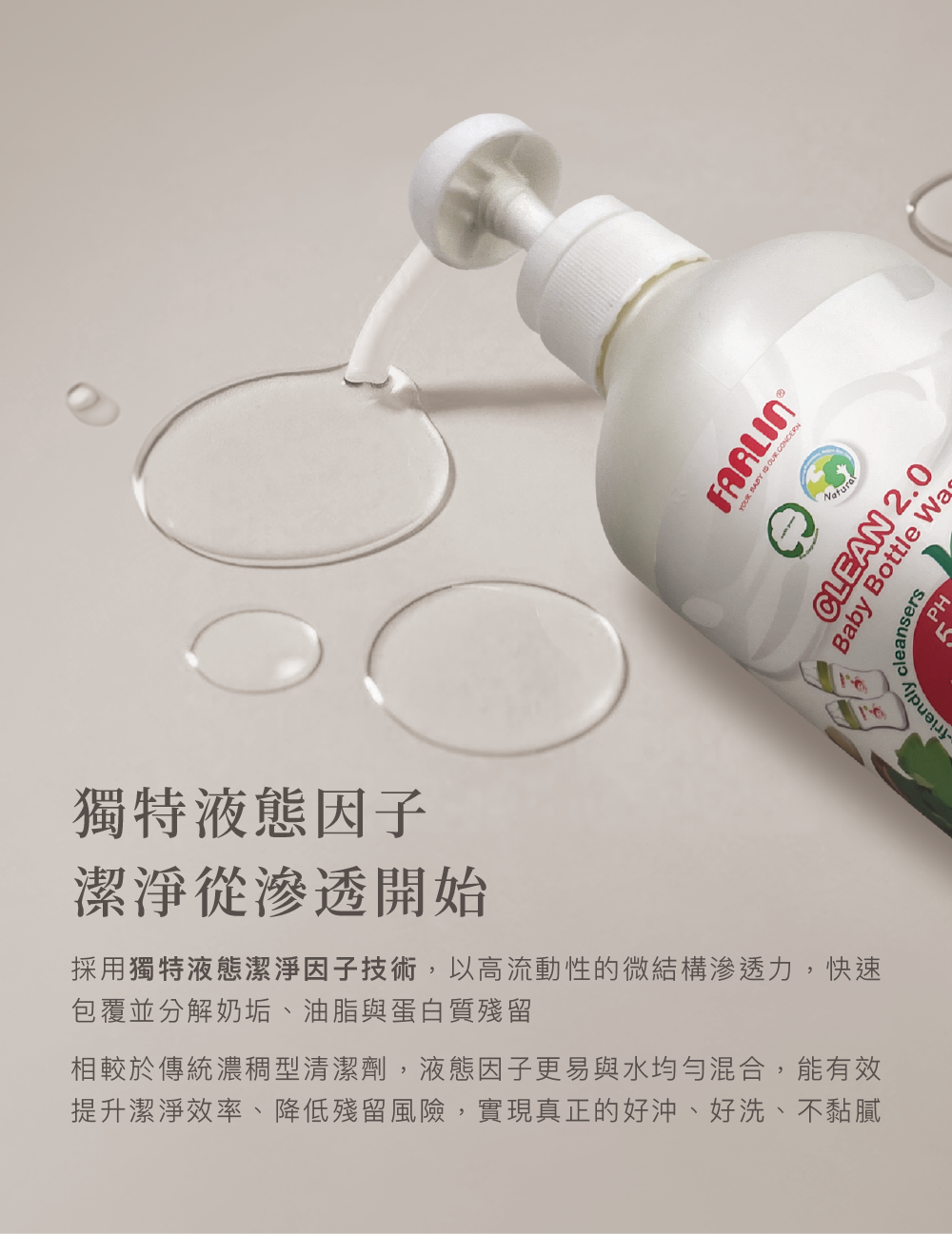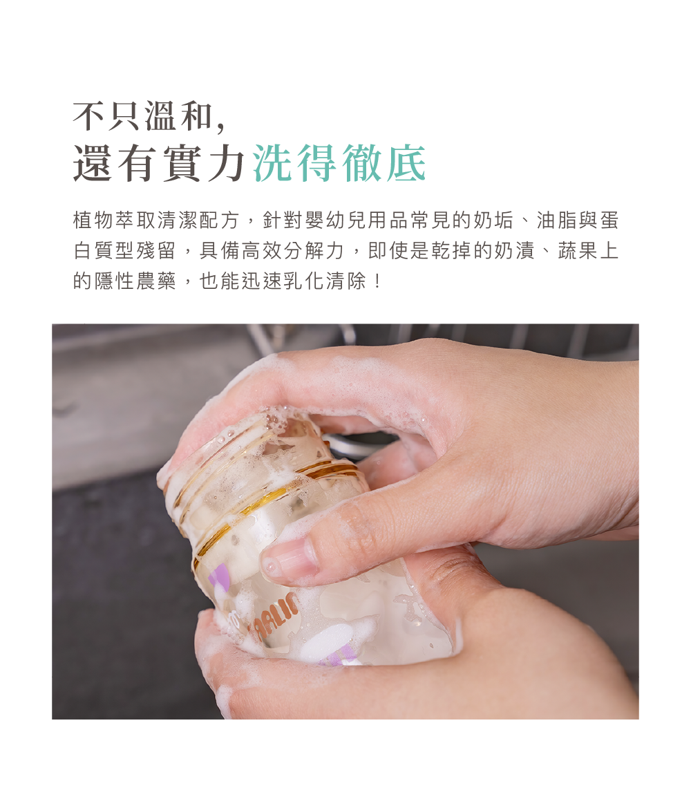 •  獨家液態深淨因子:具備高流動滲透力,能快速包覆並分解奶垢、油脂與蛋白質殘留,好沖洗、不黏膩、不殘留。
