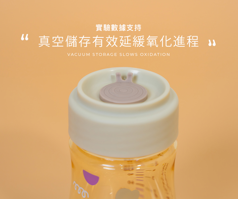 • 台灣專利真空保鮮:全球獨家專利技術,搭配真空配件可排除瓶內空氣。存放母乳能減緩氧化、鎖住關鍵營養;存放奶粉或副食品則能防潮抗氧,長效保持新鮮。