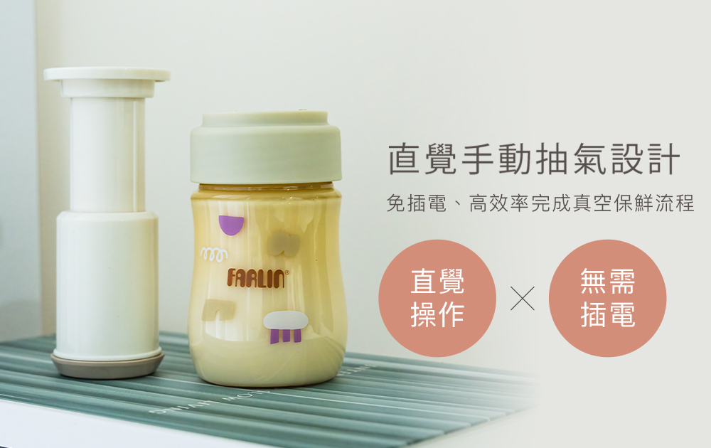 A:母乳營養極怕氧化流失。Farlin 台灣專利真空技術,可手動排除瓶內空氣,大幅減緩母乳氧化速度,精準鎖住每一滴珍貴的抗體與營養成分。