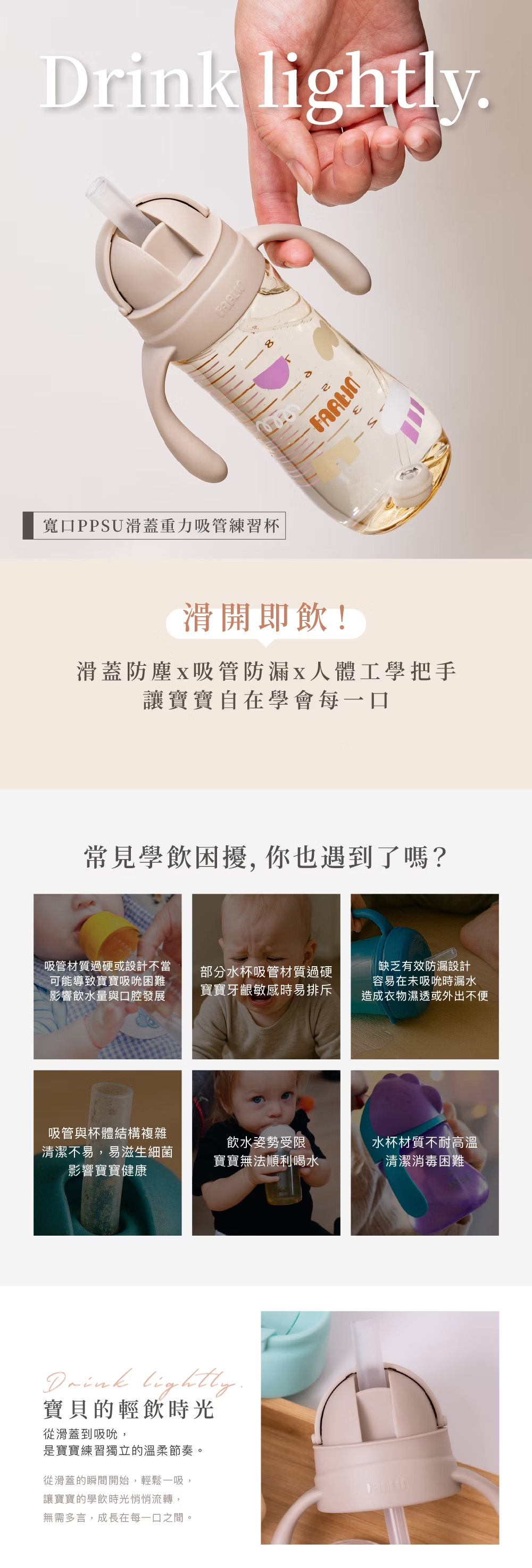 一滑即開不費力|單手操作優雅飲水