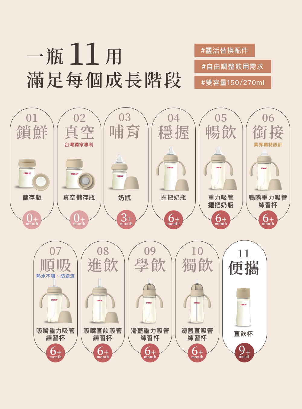 • 可與 Farlin 寬口PPSU防脹氣奶瓶、吸嘴重力吸管練習杯、滑蓋重力吸管練習杯搭配使用