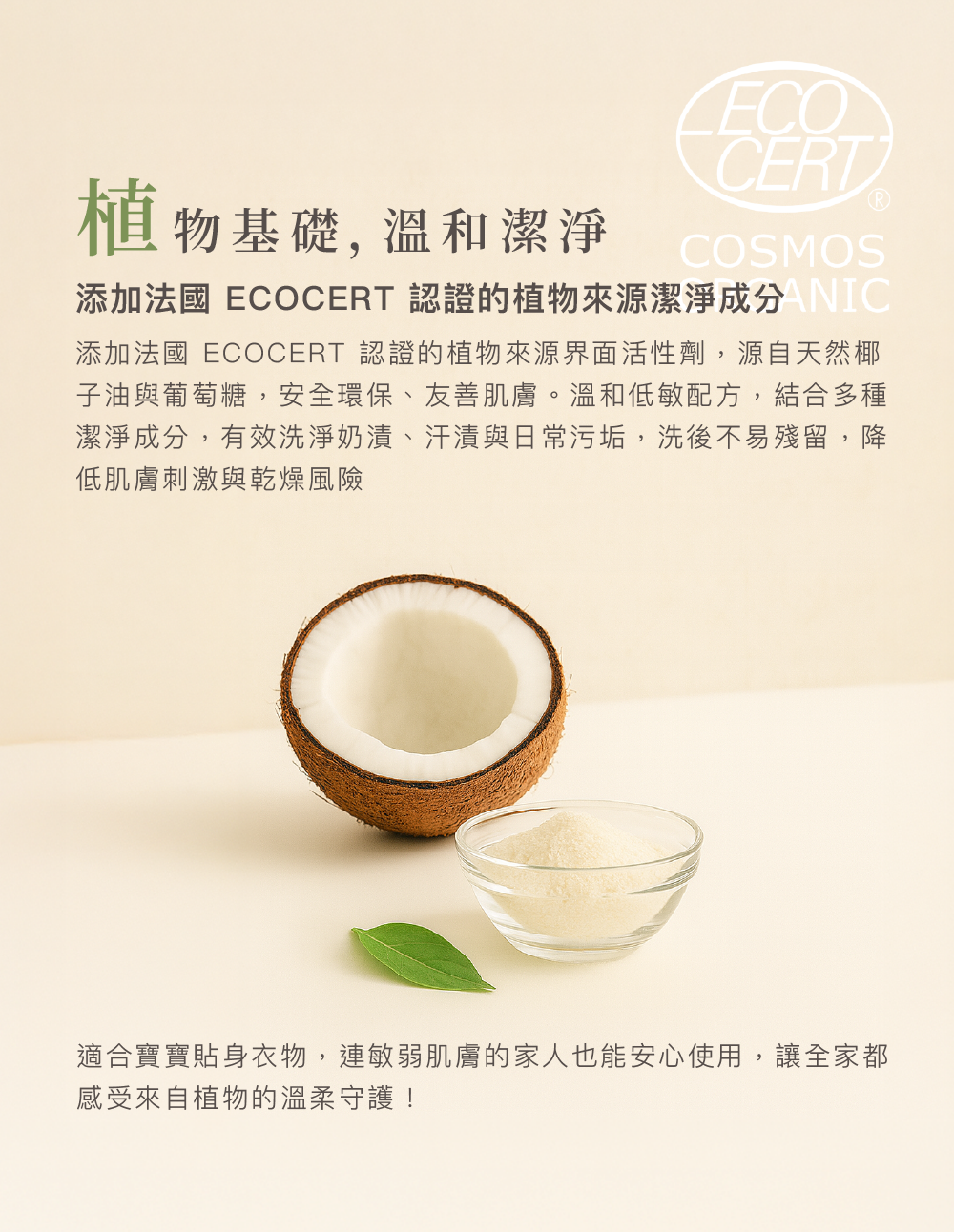 高品質用料︱APG植萃清潔配方,採用德國頂級大廠BASF 生產之 Plantacare® 2000 UP 極極致純淨 ,溫和環保。