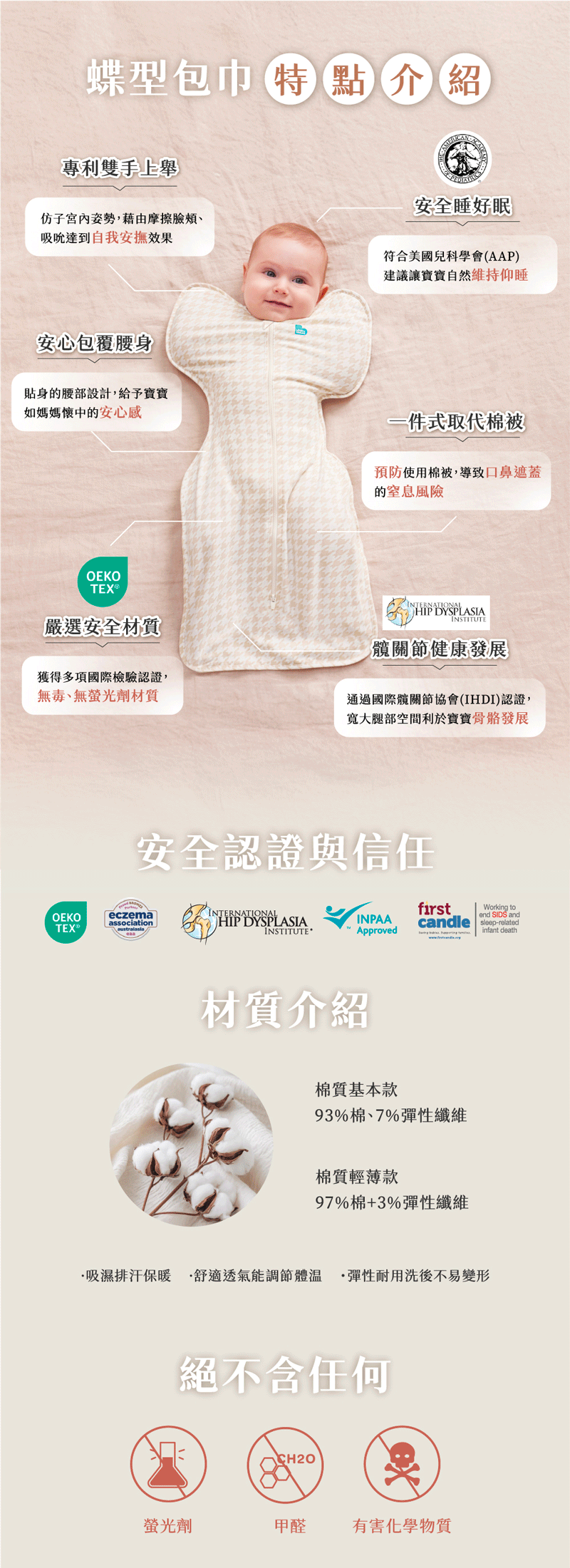 延續蝶型包巾的安全睡眠理念,